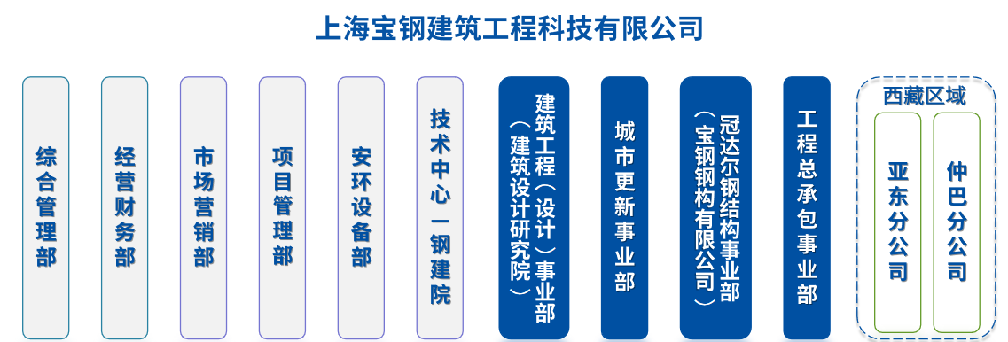 上海宝钢建筑工程科技有限公司隶属于中国宝武旗下宝钢工程技术集团有限公司,是“绿色建筑工程”业务的承载公司,致力于形成中国宝武装配式钢结构建筑技术体系和建筑用钢铁材料工程化解决方案,以工程技术服务扩大钢铁及新材料在建筑中的应用,引领现代建筑与钢铁制造耦合协同。